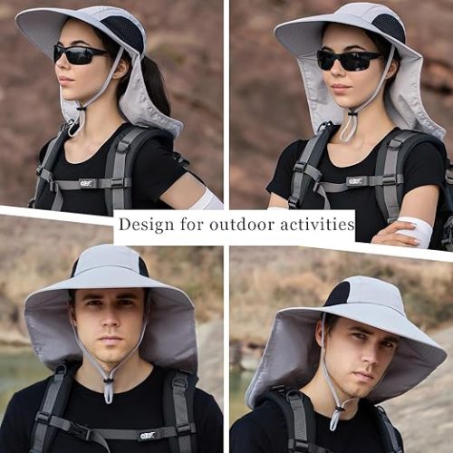 - PERFECT SUN PROTECTION FOR HEAD AND NECK – The outdoor hat has a large wide brim and neck flap to protect you from the blazing sun at all angles. The hat is rated for 50+ UPF to protect against harmful UVA and UVB rays, offering complete UV protection for your face, ears, and neck.